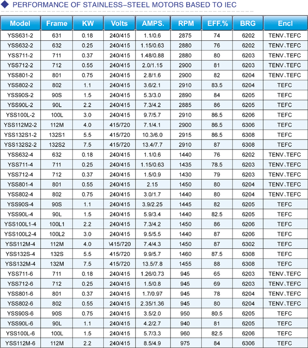 - IEC standard stainless steel motor